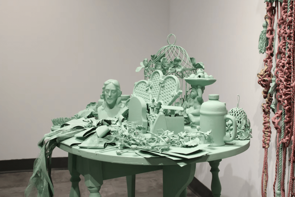 At Columbia College’s Goodall Gallery, “Southern Hospitality” by April Pauza is made up of “maximalist sculptures, constructed from familiar household objects, challenge long-held ideas about domesticity and womanhood drawn from her Southern upbringing.” It runs Jan. 12 – Feb. 26.
