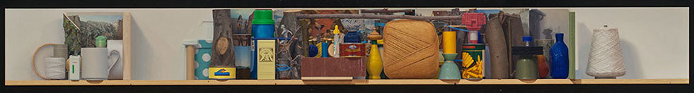 Charleston artist Ada Goldfeld’s still life paintings (broken egg shells, a measuring cup of reddish liquid in a microwave) look quite realistic, but like East’s there’s much more going on with subtle colors and many intricate marks and layers.