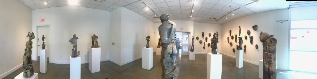 Most of the artists have three works in the show, which seems fair enough, but there’s only that one large figure for East and two by Nina Rastgart of Columbia, who is showing one small metal sculpture and one large wooden one. There’s room for more Rastgart work and anyone who has seen her recent solo shows knows she deserves more pieces here. Her pieces are also poorly displayed, separated by a door and light controls.