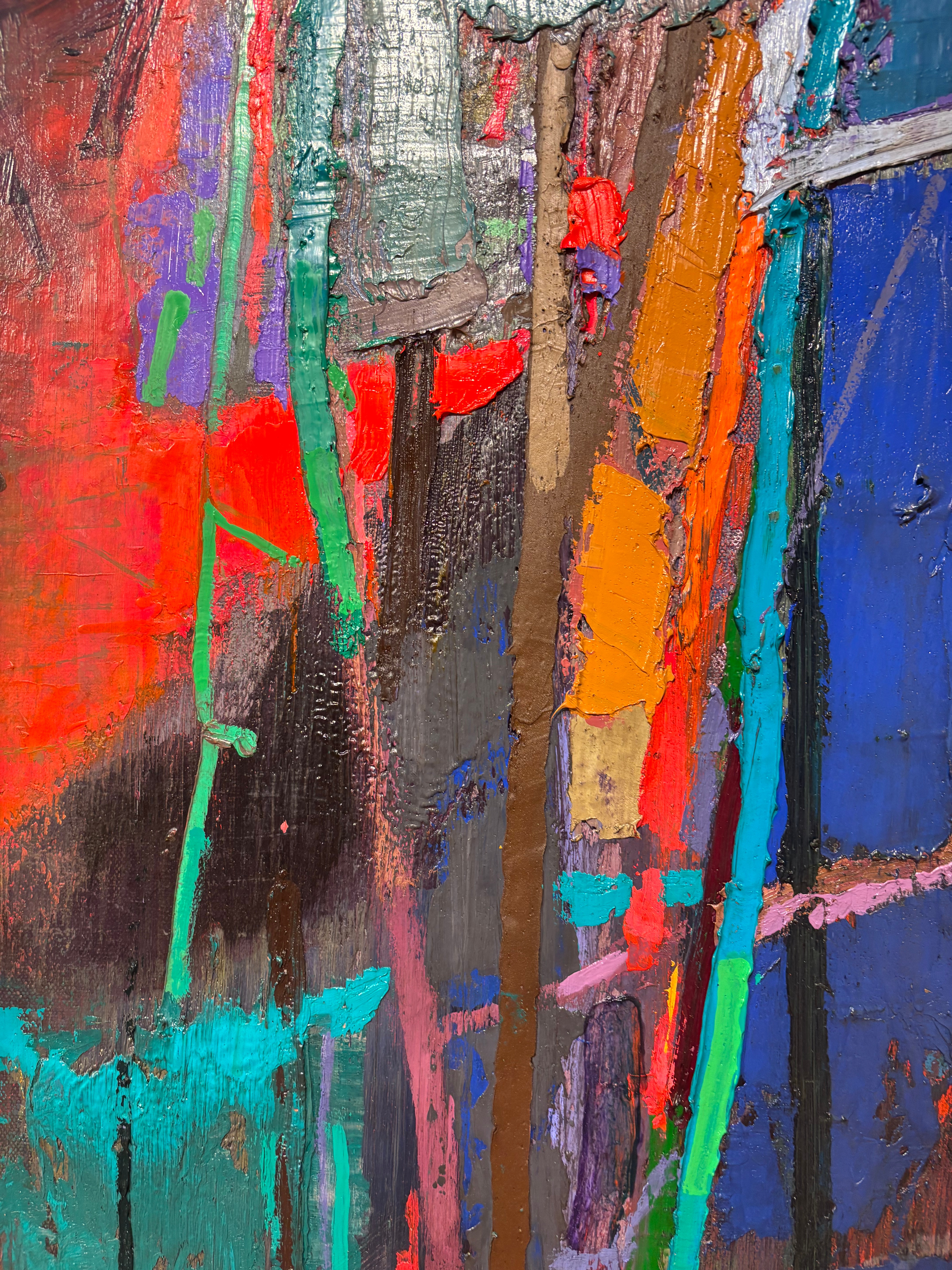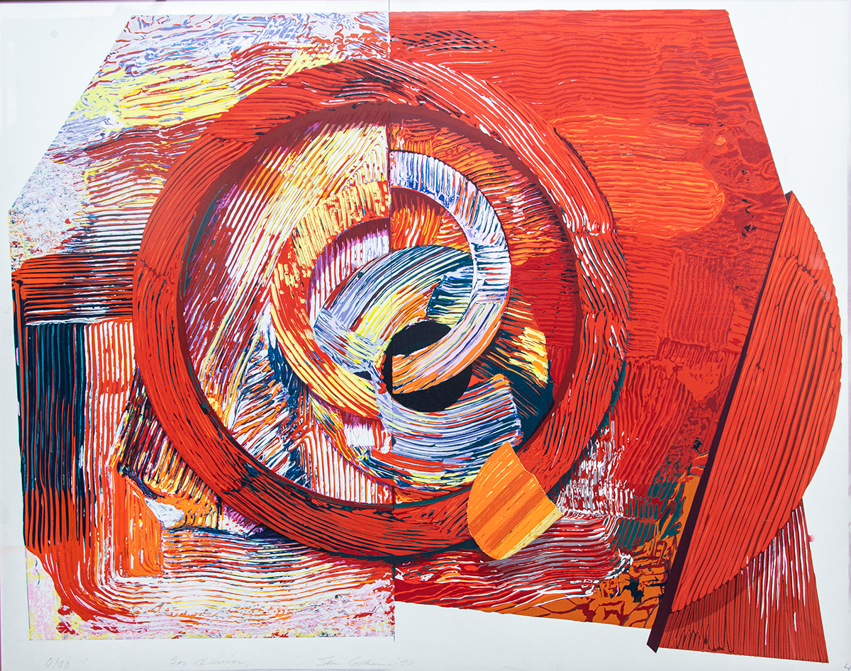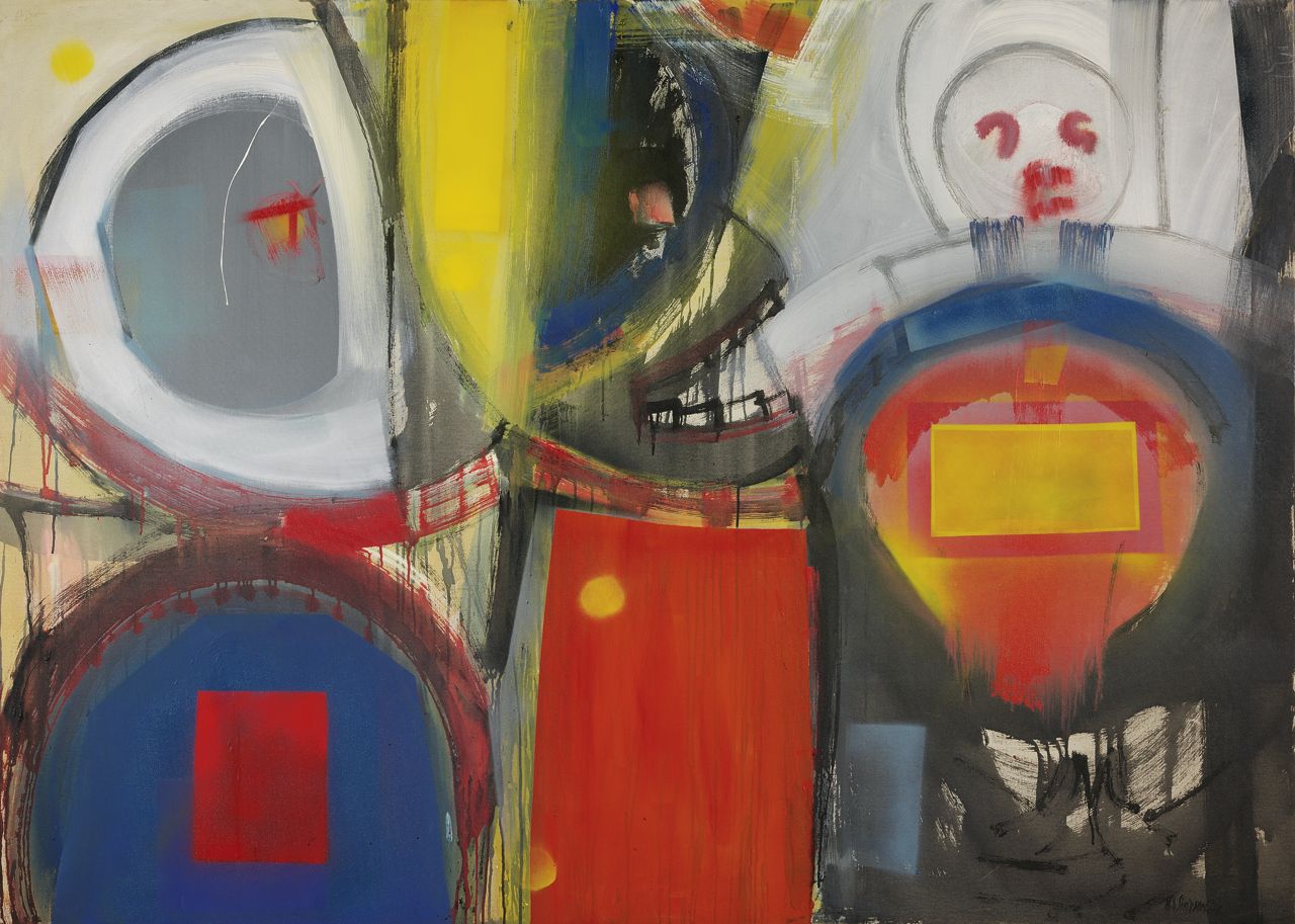 Tyzack was British and after studying in his homeland and time teaching there he landed at an Iowa art school in 1971 before accepting a job at the College of Charleston in 1976. His earlier bold color geometric works, what’s in this show, are a mix of hard edges and expressive paint application. The Halsey paintings span 1956 – 1978 and all feel related with their composition of patchy colors, some sunny, some dark. The Tyzack paintings are all from the early 1960s, all but one quite colorful. The three Rutenberg paintings, two from the early 1990s and one newer, were part of a recent exhibition (see my review July 20/25) at the museum. All were donated to the museum recently. One of the three, September (Four Last Songs), I’d consider one of the best pieces he’s ever done.