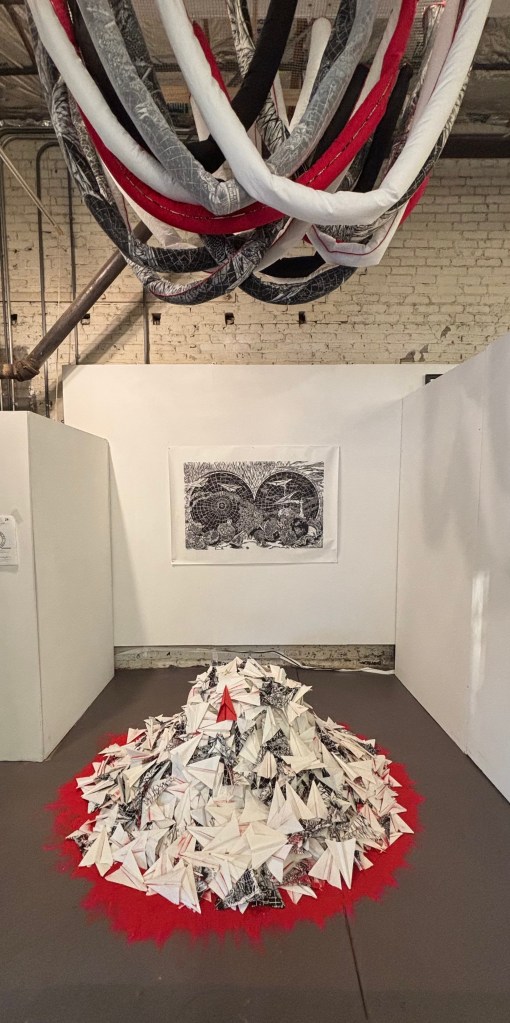 The 34 artists, each showing one work, have approached the theme in many ways and many mediums. I really wasn’t sure what to expect and I pretty much knew none of the artists, so I learned a lot and liked some and thought quite a few were good.