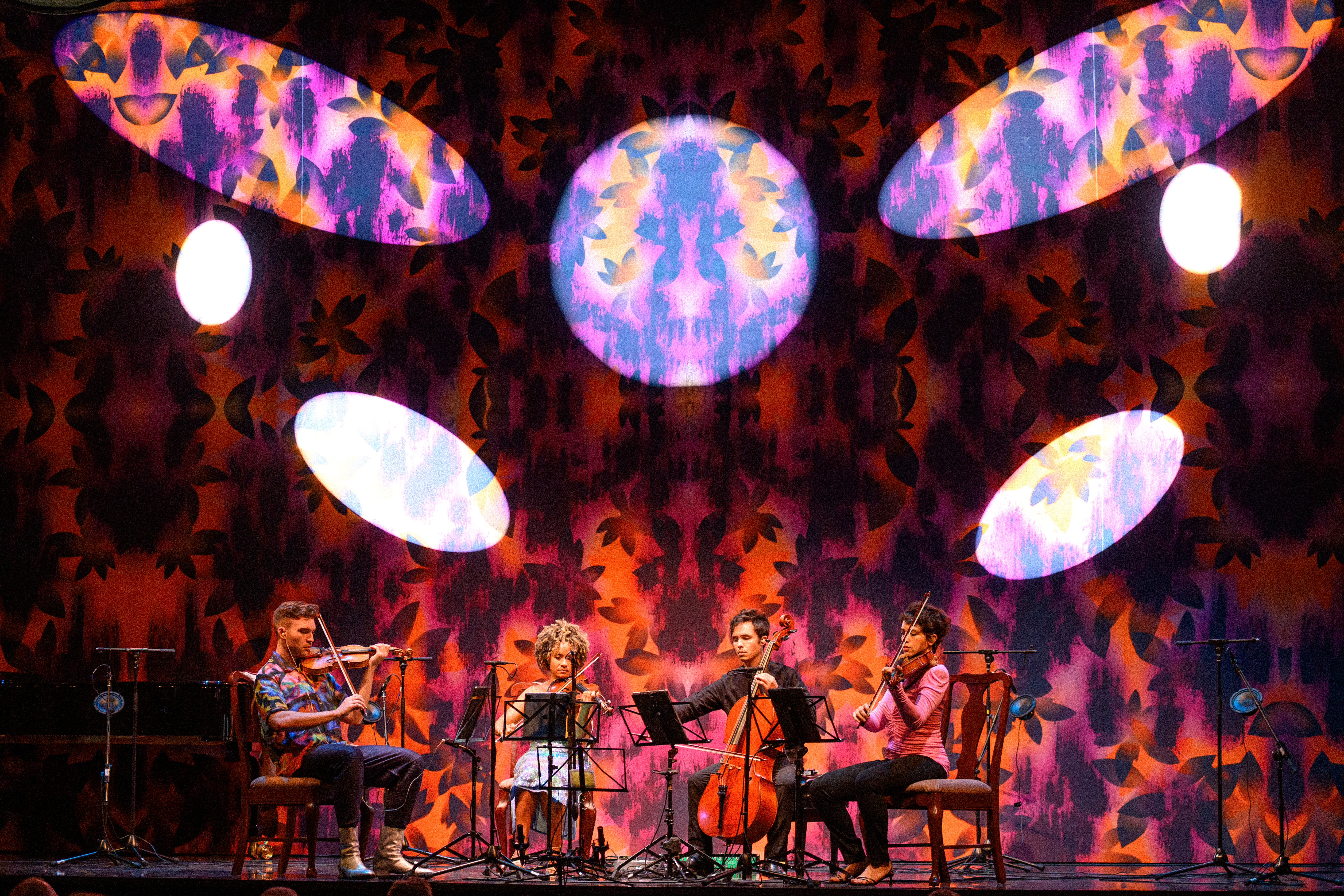 Flashback to what I experienced for two decades at the Spoleto Festival in Charleston – the St. Lawrence String Quartet performing (among other things) Osvaldo Golijov’s “Dreams and Prayers of Isaac the Blind” with clarinetist Todd Palmer. The concert was part of the Mill Valley Chamber Music Society.