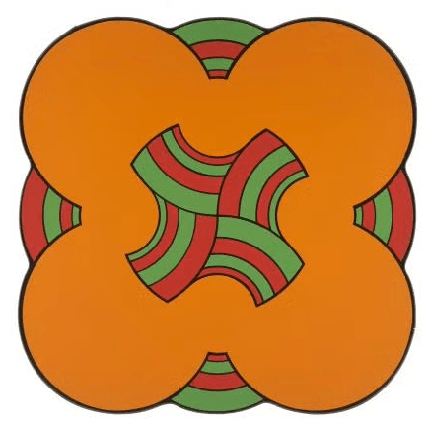 ‘Summer Solstice,” 1958, by William Halsey (left) and ‘Amadeus.’ 1968 by Michael Tyzack