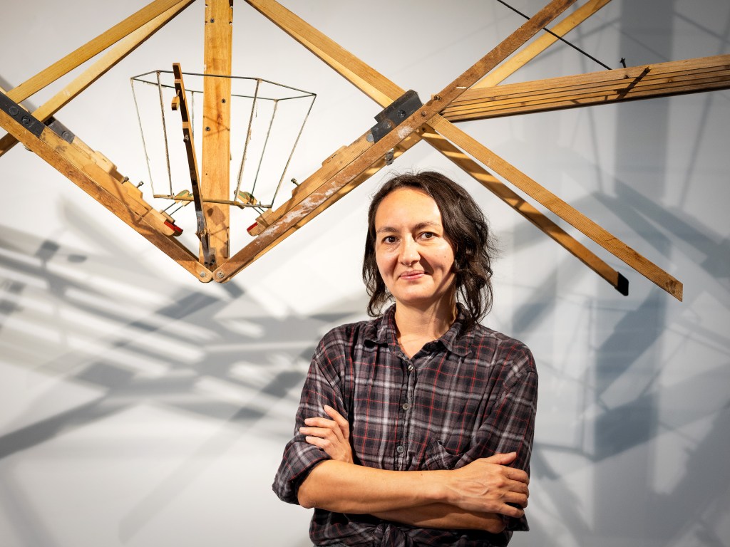 Jeff Sumeral and Goda Rupeikaite of Greenville have created a towering sculpture made of aluminum walkers with a soundtrack of two very positive voices speaking about confidence, dealing with changes and being on your own, all over some lovely cello music.