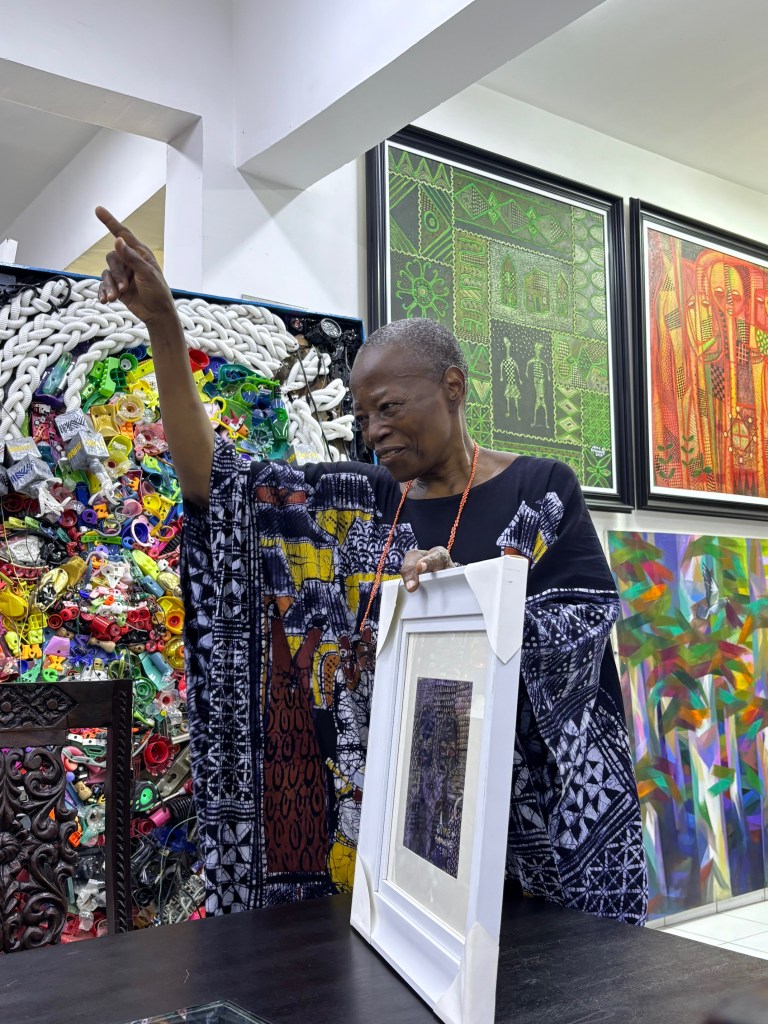 One day we headed out to the Nike (not pronounced like the shoe) Gallery where owner and artist Nike Davies-Okundaye presides and welcome all. We planned to stay for a couple of hours in the four-story space packed floor to ceiling with art (for those who know the Natsoulas Gallery in Davis, California, think of that on super steroids.) We ended up spending most of the day since she gave us coffee and lunch and introduced us to a bunch of artists and then to everyone who entered the gallery. It was quite the time. The quality of the work is all over the map as with any place this big, but there’s some great work. Among the best is her own which includes textile work, paintings, bead work 2D art and a lot more. The 74-year old has just returned from an art event in Adu Dhabi where she been commissioned to do an installation and was heading to Art Basel Miami.