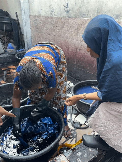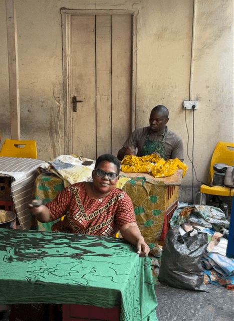 One of my favorite things was visiting the Adara Foundation adire-batik making center to train and empower low-income women in Lagos. It’s not like I’ve not seen the wax an dye process of batik before but not at this level. It’s not a huge place, with about 10 women working and a few kids around as well. Beautiful work that’s used by designers all over. I also show them some of SC’s great artist Leo Twiggs’ batik paintings.