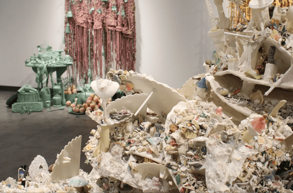 At Columbia College’s Goodall Gallery, “Southern Hospitality” by April Pauza is made up of “maximalist sculptures, constructed from familiar household objects, challenge long-held ideas about domesticity and womanhood drawn from her Southern upbringing.” It runs Jan. 12 – Feb. 26.
